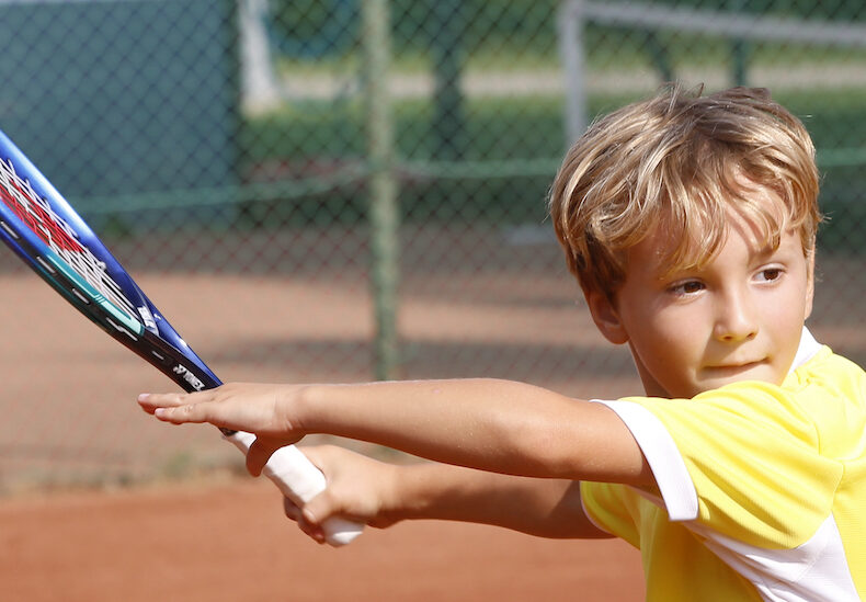 • exersează lanțul cinetic complet (de la picioare – trunchi – braț – rachetă);